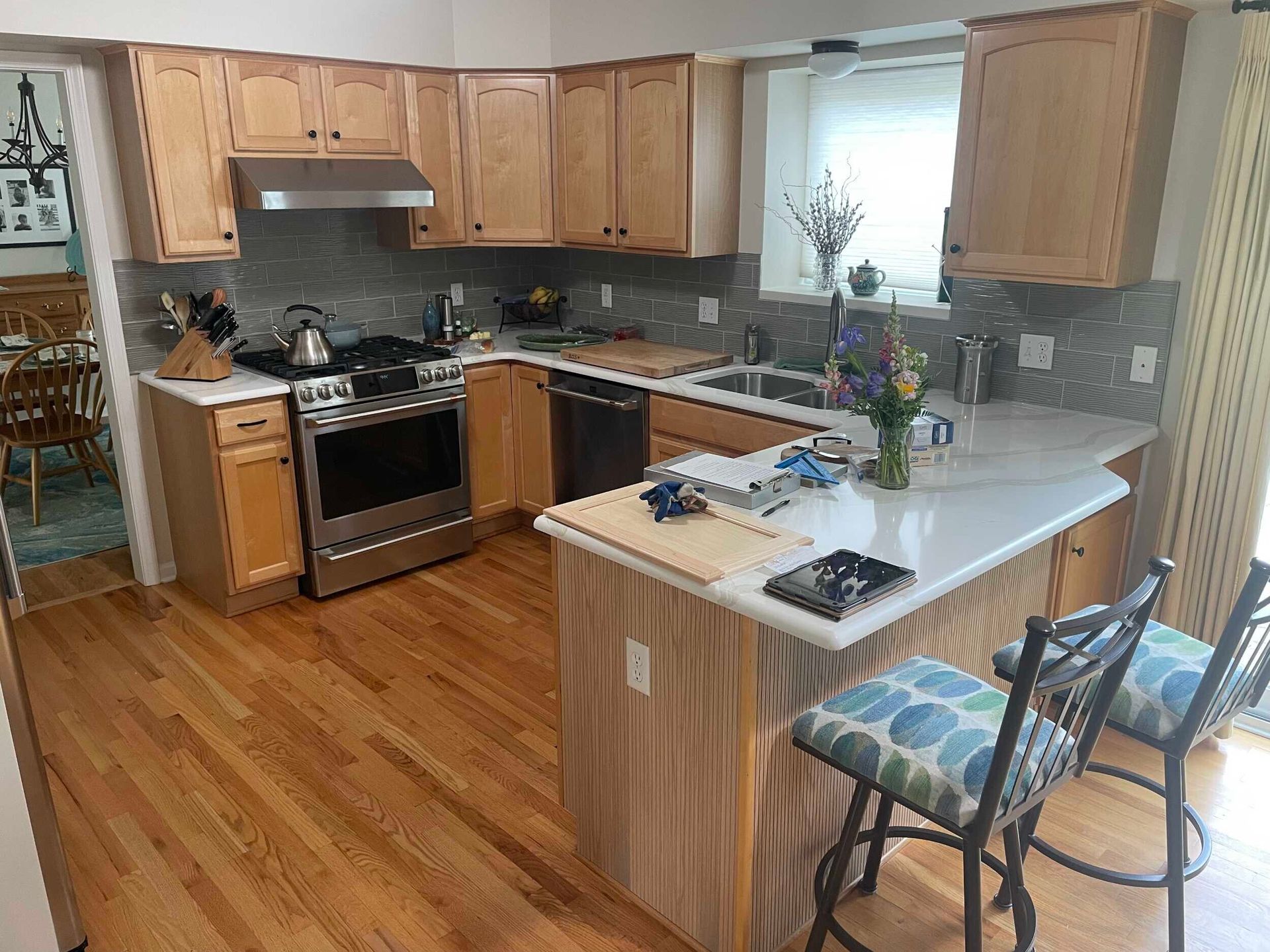Cabinet refinishing can serve as the foundation for a refreshed kitchen. Many homeowners choose to update countertops or add a new backsplash during the refinishing process for a cohesive, updated look.