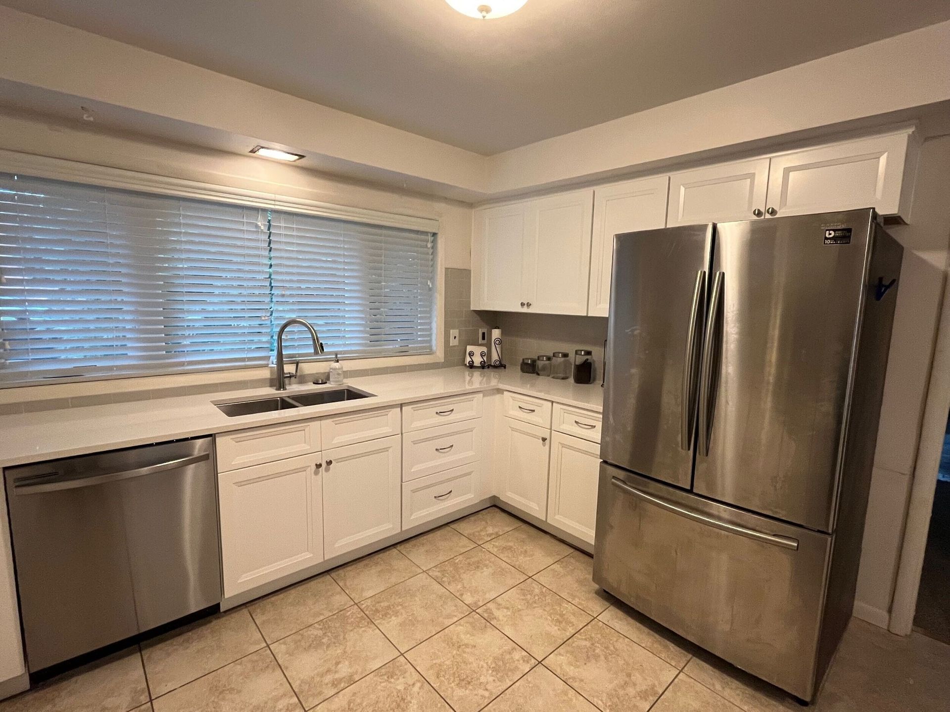 Refreshing the kitchen in updated white cabinets and snowflake countertops made this kitchen a hit with homebuyers.